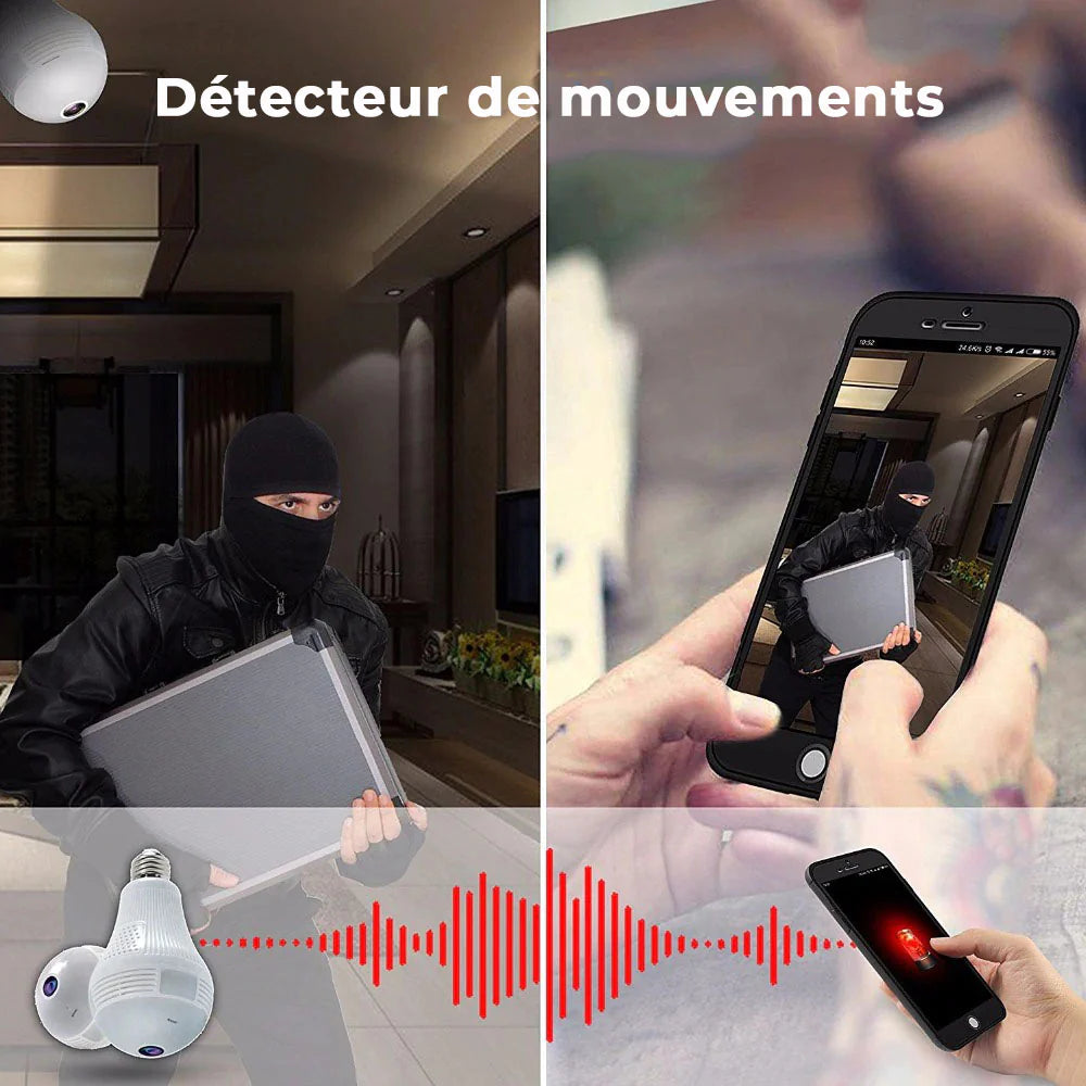 Soyez rassurés où que vous soyez grâce à cette caméra au design d'ampoule ! Dès qu'elle détecte les mouvements, la caméra envoie une notification à votre smartphone. Ce qui va vous permettre de vérifier l'activité à tout moment chez vous. La rotation de la caméra sur laquelle vous avez la main mise vous offre un angle de vue de 360°.