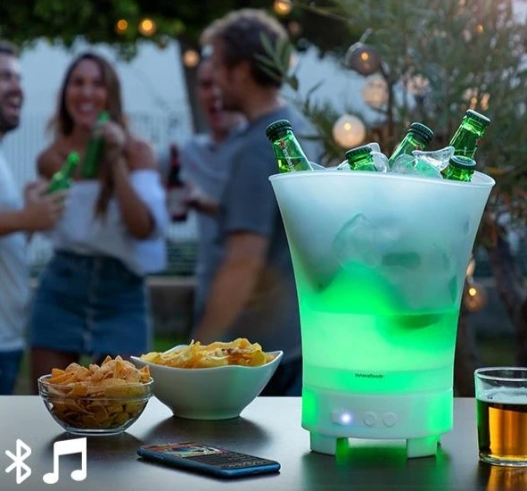 Découvrez notre bac à glaçons Led avec enceinte. Finit les allers-retours toute la soirée pour renouveler les glaçons, et profitez de toutes vos boissons fraîches à portée de main.