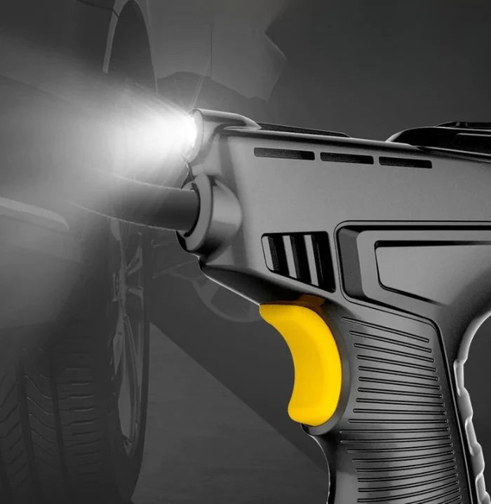 Appuyez sur la gâchette jaune pour commencer à gonfler, il s'arrêtera automatiquement lorsque la pression préréglée sera atteinte.